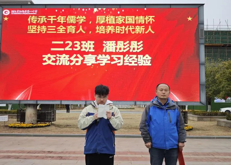 學(xué)習(xí)有方法,進步無止境。在開學(xué)收心檢測中勇奪第一名的高二(23)班潘彤彤進步喜人,上臺作學(xué)習(xí)經(jīng)驗分享: