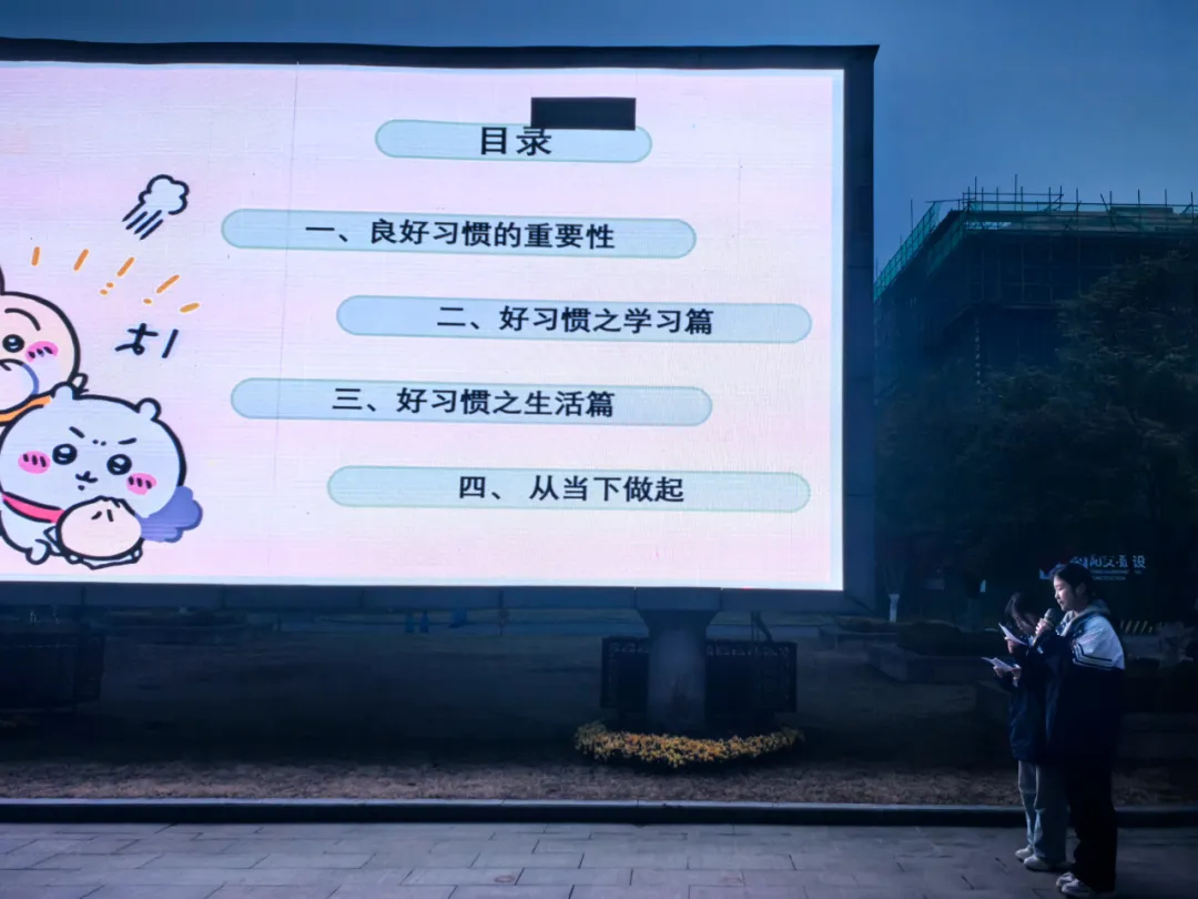 晨會領(lǐng)航,養(yǎng)習啟思。高一2班柯怡萱與張琛娜同學帶來了以“培養(yǎng)良好習慣,鑄就美好人生”為主題的精彩演講。