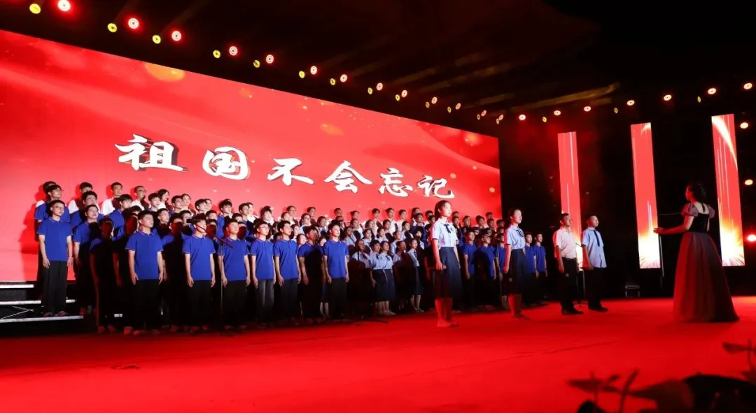 高三年級(jí)大合唱《祖國不會(huì)忘記》:鏗鏘歌聲響徹,激昂旋律回蕩,深情訴說奉獻(xiàn)者的赤子丹心。