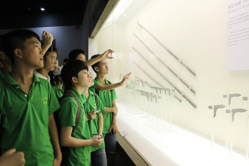 上午九點(diǎn)四十分,博物館的張凡老師在博物館大廳首先對(duì)博物館做了大致介紹,并對(duì)接下來(lái)的參觀做了布置。隨后營(yíng)員們分組,分別在講解員的引領(lǐng)下興致勃勃地參觀了博物館展廳和校史館。