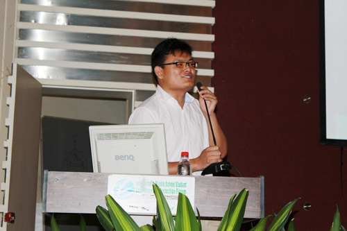 第二部分,資源學(xué)院碩士研究生王成彬同學(xué)為大家?guī)?lái)了《地勘人的貴族式生活——我的大學(xué)生活,我的野外學(xué)習(xí)科研》的精彩演講。一 開(kāi)始,王同學(xué)從地質(zhì)學(xué)的起源、地球科學(xué)的研究問(wèn)題、理論與實(shí)踐三方面入手,向大家介紹 了遙感技術(shù)、巖石樣品的采集過(guò)程。隨后,他著重分享了自己的野外學(xué)習(xí)和考察生活,比如北戴河地質(zhì)認(rèn)知實(shí)習(xí)中,接觸了人造瀑布、老虎灘、火成巖和部分海洋生物;大冶鐵山和周口店野外實(shí)習(xí)中找分界點(diǎn),參觀溫總理的實(shí)習(xí)宿舍,進(jìn)行籃球比賽,分享了那句“羅盤指引人生路,鐵錘撞出絢麗花”;千島湖附近的實(shí)習(xí)中,奇樹(shù)、奇石,還有隱約可見(jiàn)的文革標(biāo)語(yǔ),偷西瓜的經(jīng)歷被他調(diào)侃為“跟野豬搶口糧”,還有那些漂亮的褶皺,雪中西湖斷橋美景……之后,他介紹了研究生階段的實(shí)習(xí)經(jīng)歷。深入云南建水區(qū)、九頭山、老鷹窩的鉛鋅礦;接觸蜂窩狀爐渣樣的礦石、溶洞中的燕窩;新疆戈壁灘的藍(lán)天白云、晚霞令人流連忘返,花崗巖的風(fēng)化不禁令人感嘆大自然的力量;魔鬼城、戈壁玉,天山天池,雪山,礦山之外領(lǐng)略美景;福建土樓,古田會(huì)議遺址,恭王府,羊肉饃和羊排,感受歷史同時(shí)又飽口福……難怪他自稱“貴族式生活”!